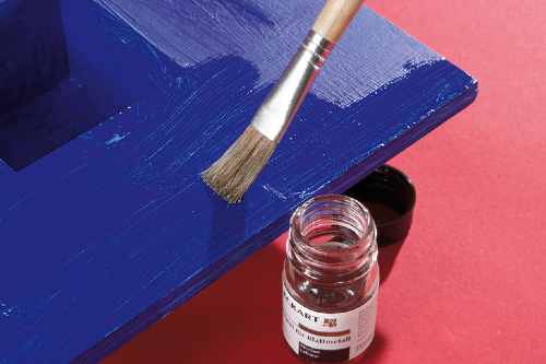 The picture frame is first pre-painted with an acrylic paint. After drying, sand the surfaces well and apply a second coat of paint.