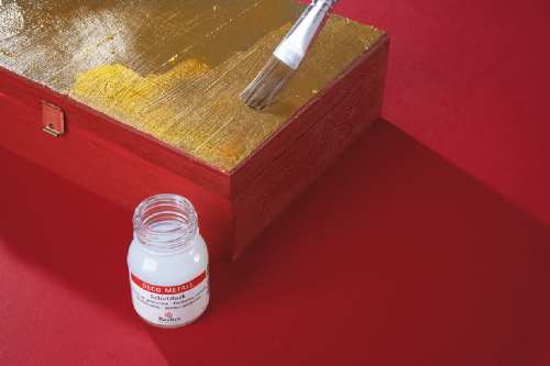 Then a mixture is coated with the brush on the dry and dust-free substrate. This ingenuity oil is necessary for the long-lasting durability of the transfer leaf gold. About three hours after the application, the ideal adhesive force for the application of the leaf metal is achieved. When you rub over with your finger, a slight antiqued tone is created.
