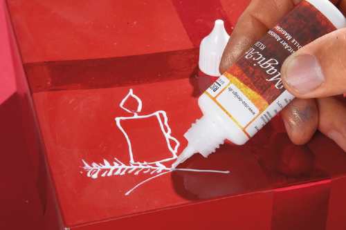 The adhesive forms the contour and lets it dry until it is transparent. Then put on the gold or silver foil and rub.
