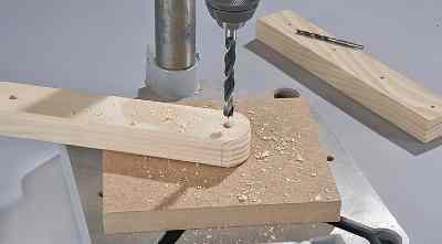 The upper ends of the sloping legs are rounded. A glass or egg cup serves as a template for the rounding. Use the hand saw to roughly cut the shape and then work it out with the rasp.