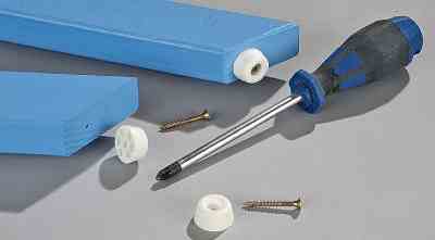 Then screw plastic feet (15 x 8 mm) under the legs so that the wood does not come into direct contact with the often damp floor.