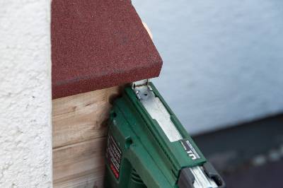 Knock over the roofing board at the front edges and then attach it to the bottom with a tacker.