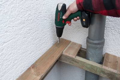 For the frame, drill holes and then screw them together in the desired length and inclination (approx. 15 degrees).