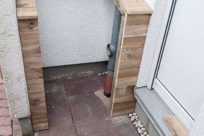The wall niche is the ideal place for our garbage can box. The installation of the scaffolding is very easy here.
