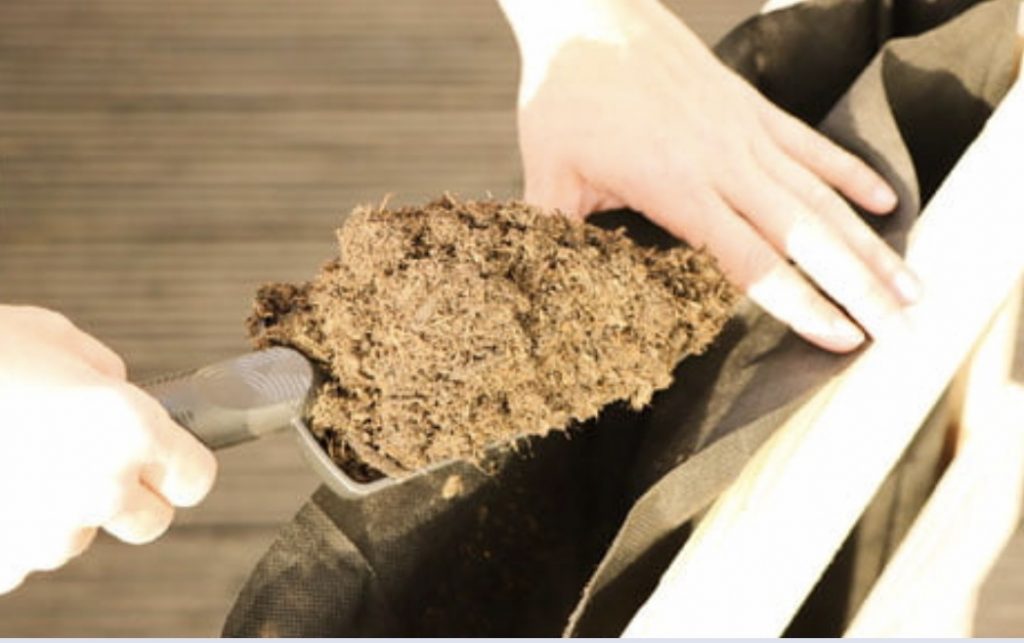 Place the vertical garden and insert the fleece bag from above. Here it is good to have a second helper, who holds the edge of the sack when the earth is then filled in.
