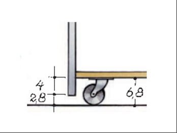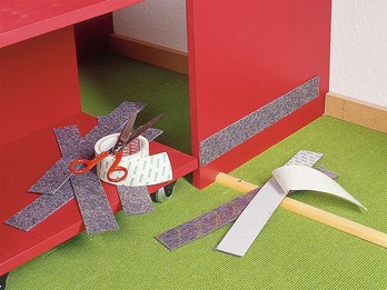 A suitable semi-circular strip, about 5 cm behind the front edge in the ground, is an extension stop for the shelf trolleys. At the height of the two floors of the trolley, you should stick felt strips on the side walls so that no scratches remain in the paint by pushing back and forth.