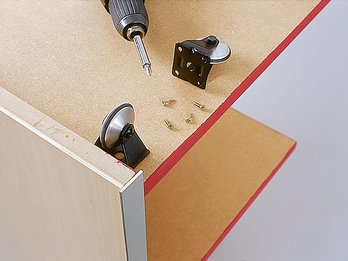 The front panel consists of a 19 mm MDF plate on which a 5 mm thick veneer plate is glued onto. The edges of aluminium profiles are slightly wider than the front panel is thick. Remove the supernaging of 6 mm.