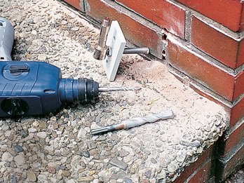 When the concrete has been tied and the post shoes are resilient, the posts are inserted and precisely aligned piece by piece with water scales. A screw clamp keeps them in position.