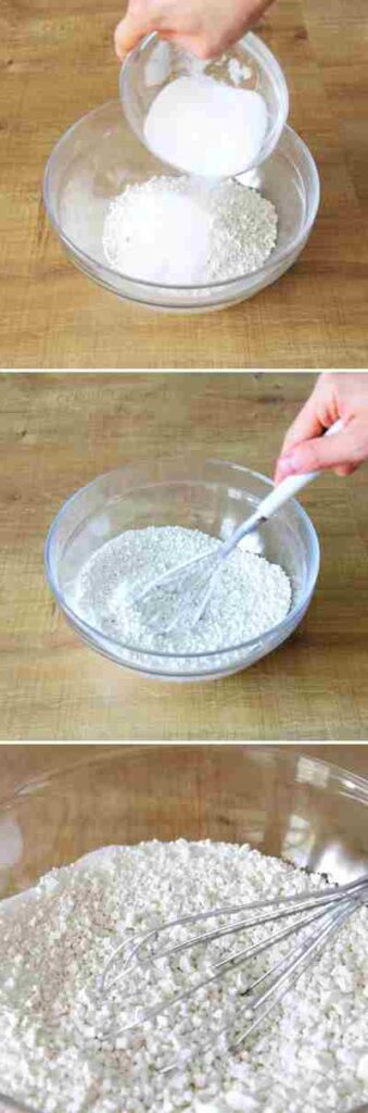 2nd step: Mix the Usagi Shiratamako (sticky rice flour) with the sugar in a medium-sized bowl that will fit in your microwave.