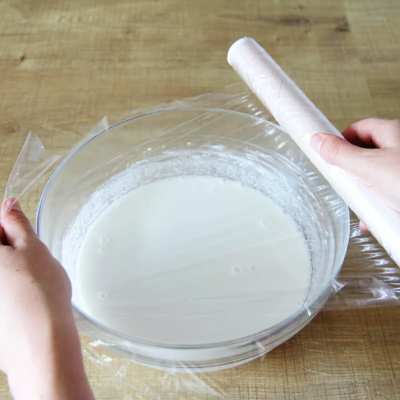6th step:The color of the mochi dough should change from white to almost translucent and the mass should no longer look very moist (otherwise put it in the microwave for another 30 seconds).