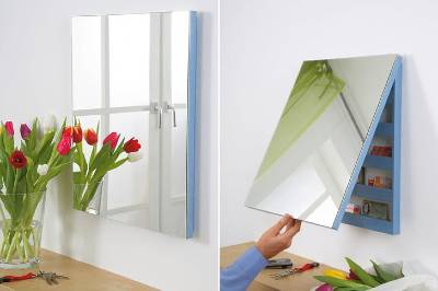 Let’s face it, would you suspect a valuables compartment behind the mirror? Certainly not. The small photo below clearly shows how flat the entire construction is, namely 4 cm, because the front frame with the 40 x 50 cm large mirror grips about 1.7 cm over the rear!