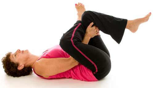 - Lay down on your back. Pull one leg up towards the upper body. The other is stretched out flat on the floor.