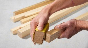 In the next step, sand all saw edges. To do this, use a sanding block wrapped in sanding paper (120 grain).