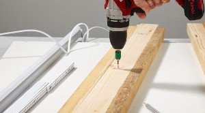 First, you need to measure and saw the wooden strips. The material lengths are derived from the selected bulb plus 10 to 20 cm addition.