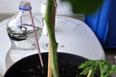 Good for small pots: an empty bottle or other container serves as a water reservoir. This is connected to the pot via a wet, thick woolen cord. Bury the thread close to the roots to half the pot depth. If the soil in the pot becomes dry, it automatically “sucks” water from the reservoir via the moist wool thread.