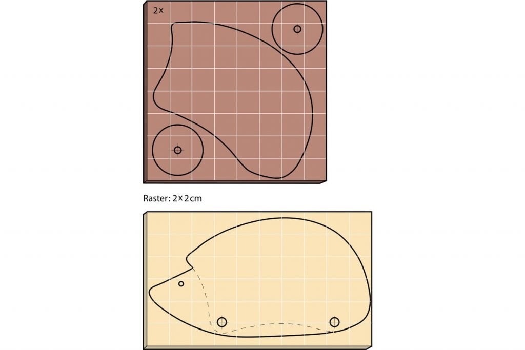 The templates are reduced in size. The easiest way is to copy them up to 200%. If you cannot use a copier, first transfer the grid to the wooden plate, then the outline. The squares must have an edge length of 40 mm.