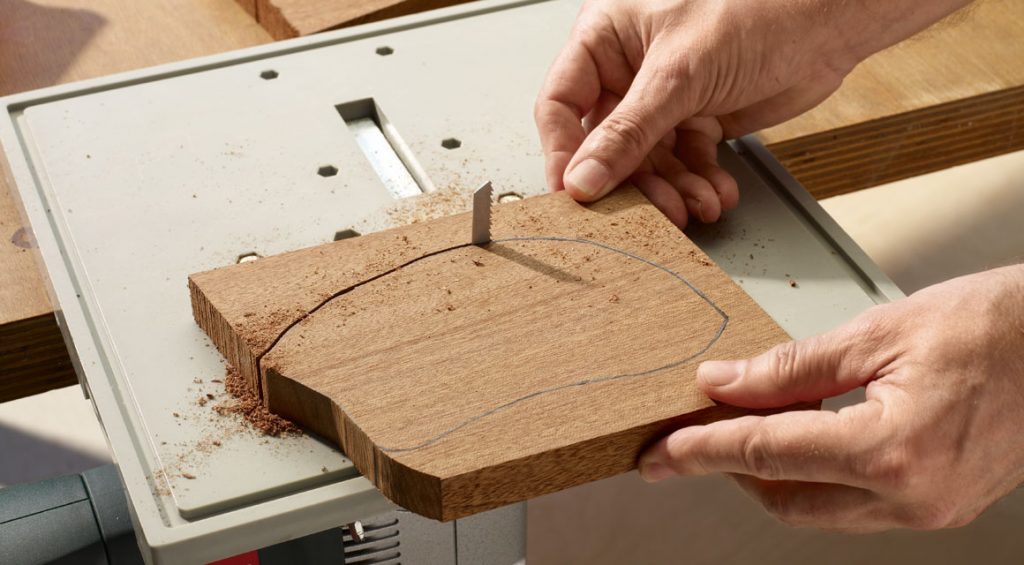 A jigsaw table makes it easier to create the animal contours: both hands can guide the workpiece. However, if you do not have a table, you can clamp the wood with the cutting line free of the bench, and then just move it as you need to in working your way around the outline.