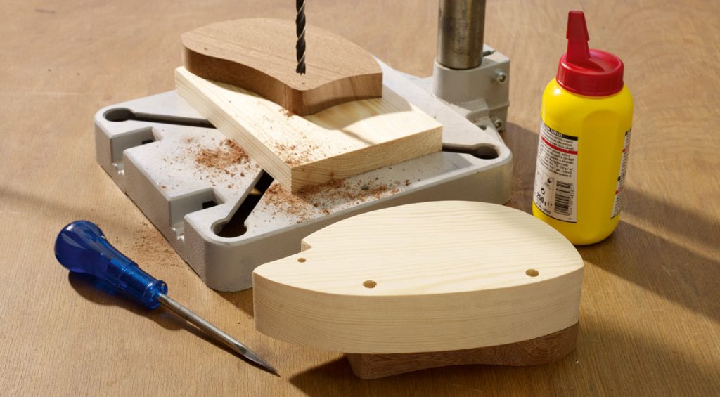 The spinning tops and the rolling animals have one thing in common: the disc wheels. The production of such small wheels is very easy. All you need is a hole saw. It serves to saw holes, but what comes out by the way is a circular disc. And this with a centric hole for the axis. This bore initially has a diameter of 6 mm, which is sufficient for the gyroscopes. For the sliding animals, however, it is recommended to drill the holes in the wheels on 8 mm and take appropriate round woods. This is more stable and prevents axle breakage.