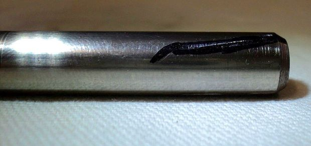 This tool is even easier to fabricate than to restart the drill by simply chamfering the point and using a cold chisel — one stroke quite hard — to introduce a disturbance of material inline with the shaft. Slightly off-center becomes bearable, but keep it to a minimum. This bulge is actually going to do the tiny hole over-sizing necessary to allow a slip fit from the shaft strand.
